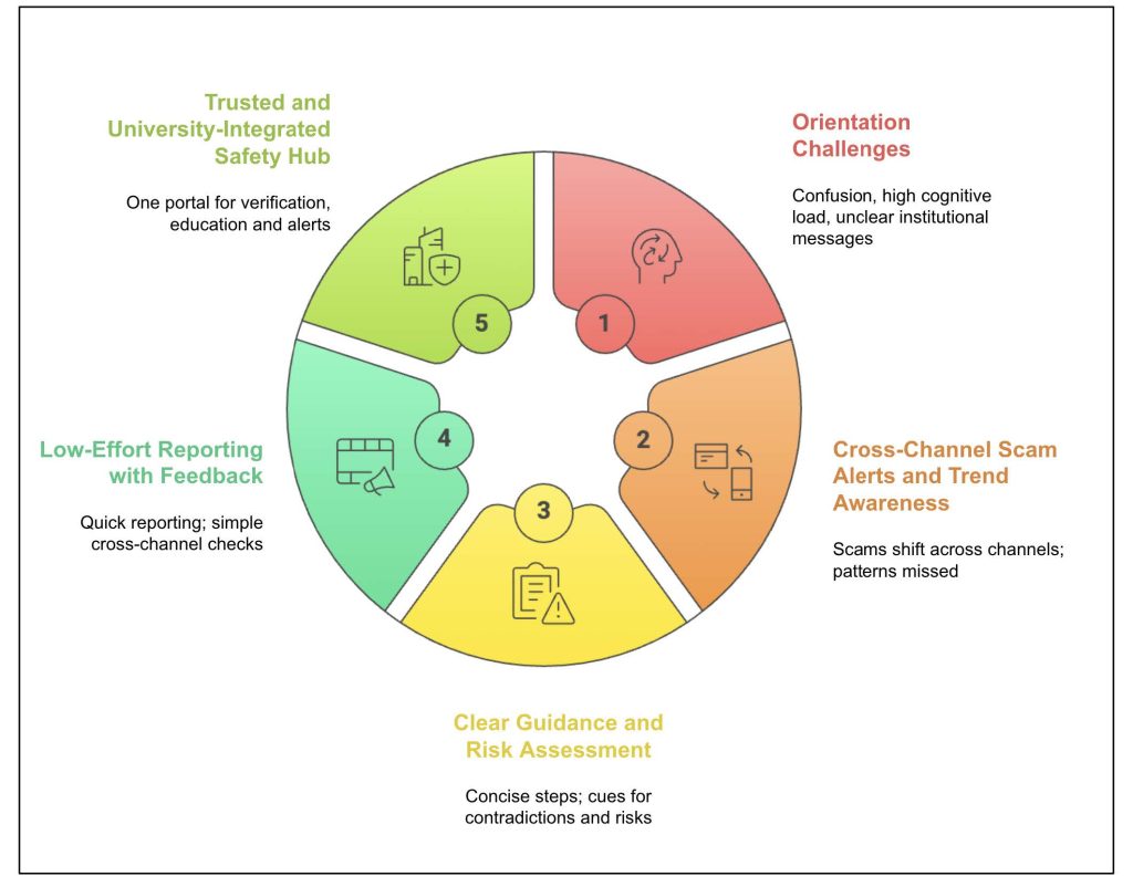 • Contextual explanations: Instead of just saying “this is a scam,” tools should explain why based on the cultural cues the student might be missing.